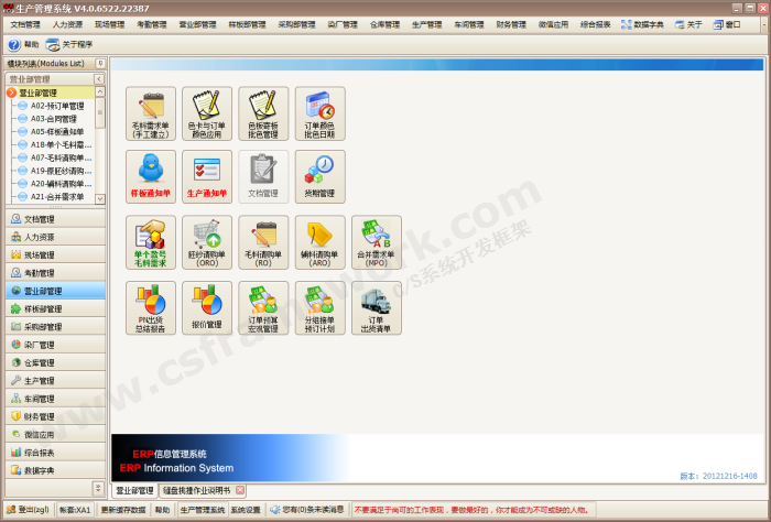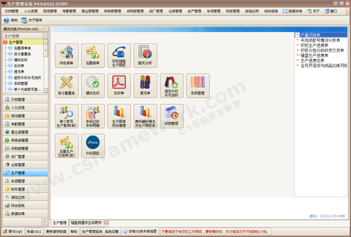C/S系统开发框架成功案例-毛衫针织行业ERP系统(2013)