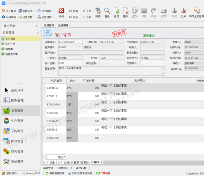 C/S系统开发平台成功案例-义乌饰品ERP系统(2018)