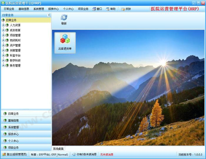 是医院引入ERP(Enterprise Resource Planning企业资源计划)的成功管理思想和技术,融合现代化管理理念和流程,整合医院已有信息资源,创建一套支持医院整体运行管理的统一高效、互联互通、信息共享的系统化医院资源管理平台。