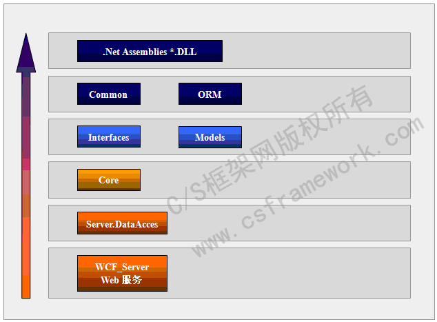 Web Service模式,DAL层部署在服务端,运行服务时根据web.config配置初始化数据层策略接口。
