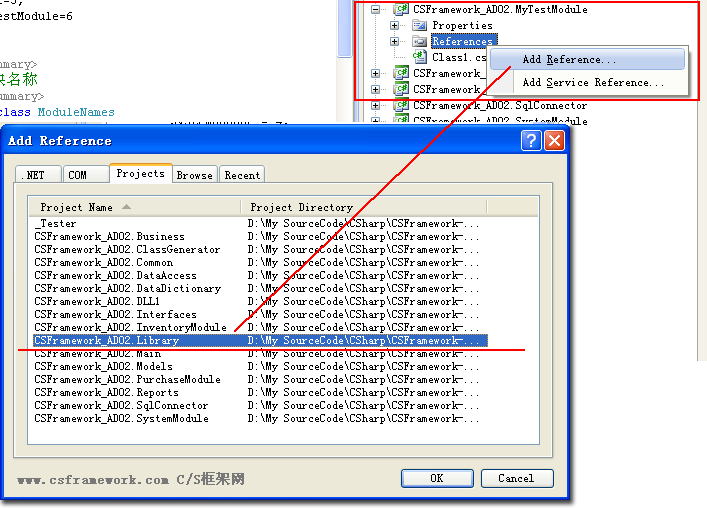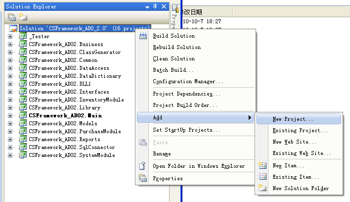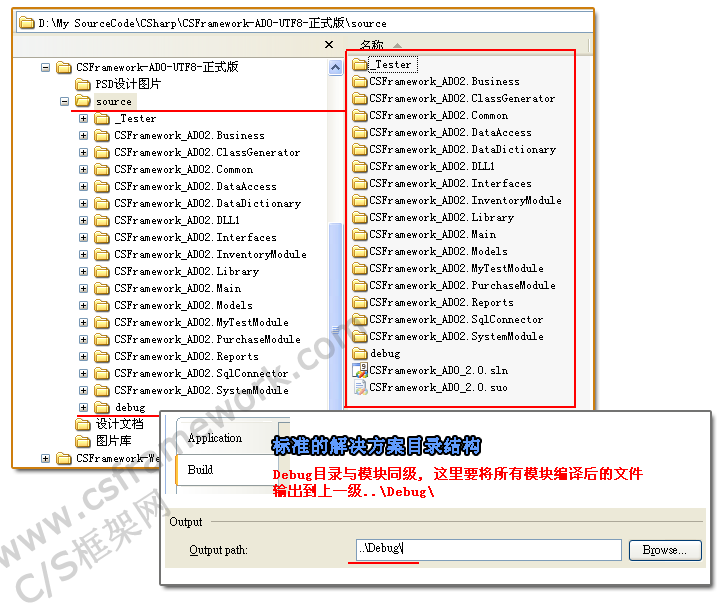 答: a.确认Debug目录下有没有CSFramework_ADO2.MyTestModule.dll文件. 如果没有请选中项目, 右键打开Properties菜单,在Build页设置Output