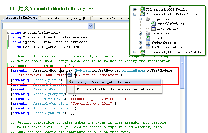 b.查看 AssemblyInfo.cs文件,是否有AssemblyModuleEntry属性