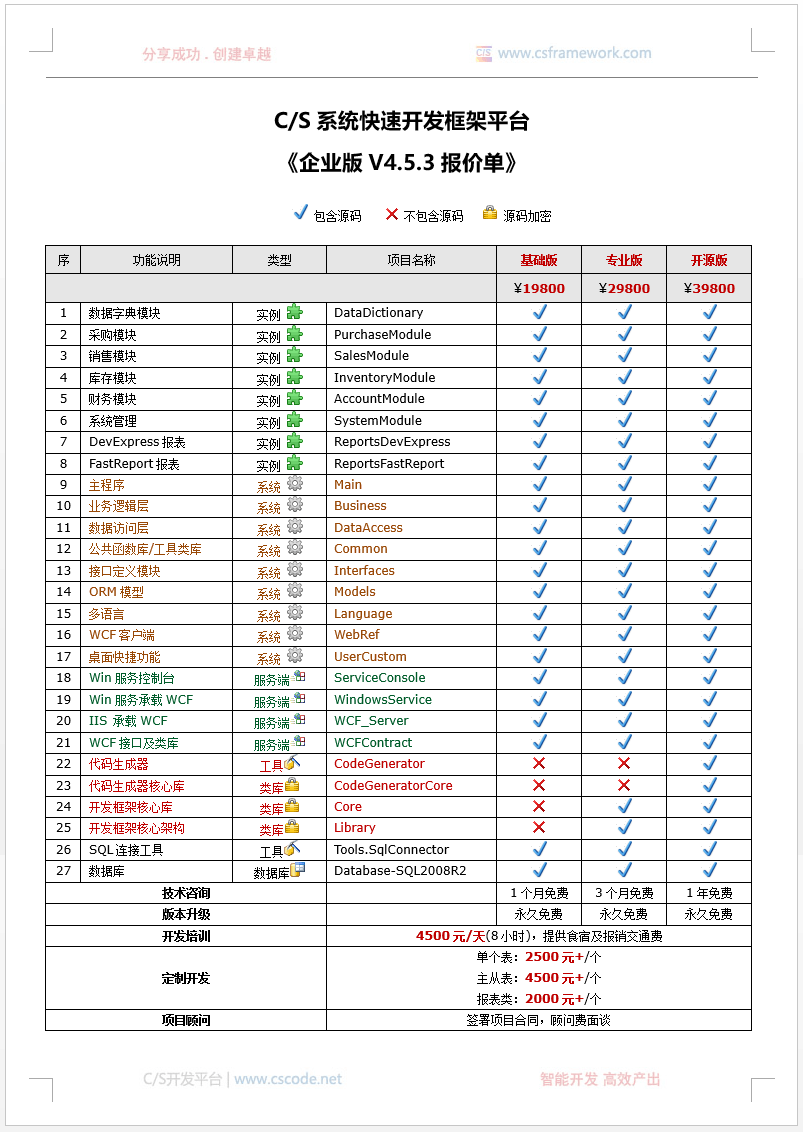 C/S框架网 | 软件产品 | C/S系统开发框架-企业版V4.5.3-产品报价