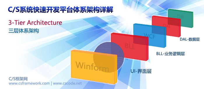 C/S系统快速开发平台采用三层逻辑架构(3-Tier Architecture),由界面层(UI-User Interface Layer)、业务逻辑层(BLL-Business Logic Layer),数据访问层(DAL-Data Access Layer)三层组成。在软件体系架构设计中,分层次是最常见也是最重要的一种设计思路,目的是实现“高内聚,低耦合”设计思想。
