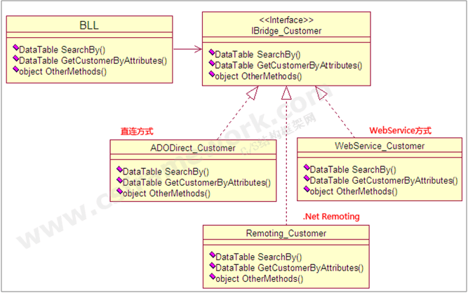 客户管理的业务逻辑层BLL(bllCustomer) 定义了策略接口IBridge_Customer的变量_MyBridge。