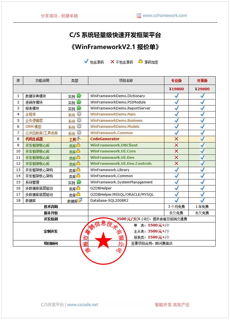 C/S系统轻量级快速开发框架v2.1报价单|购买指南|C/S框架网