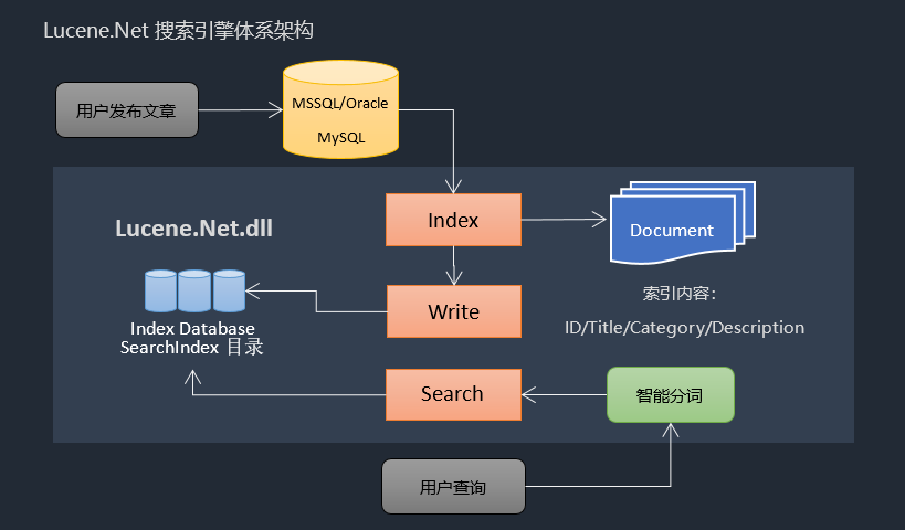 发布资料自动更新Lucene本地索引数据库,无须匹配数据库查询,面向搜索引擎友好性。