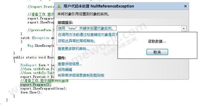 | 调用FastReport Prepare方法提示“未将对象引用设置到对象实例”