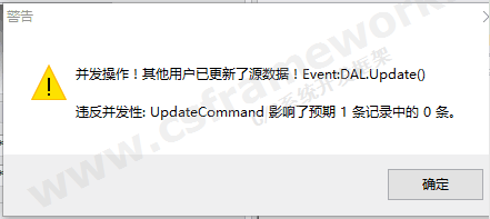 CSFramework开发框架报错:违反并发性:UpdateCommand影响了预期1条记录中的0条