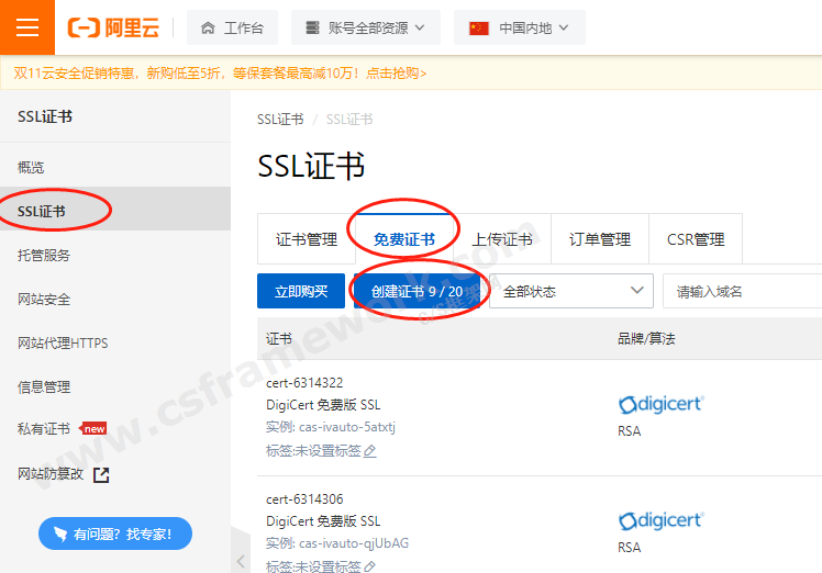 阿里云购买免费ssl证书、下载、安装ssl证书操作详解