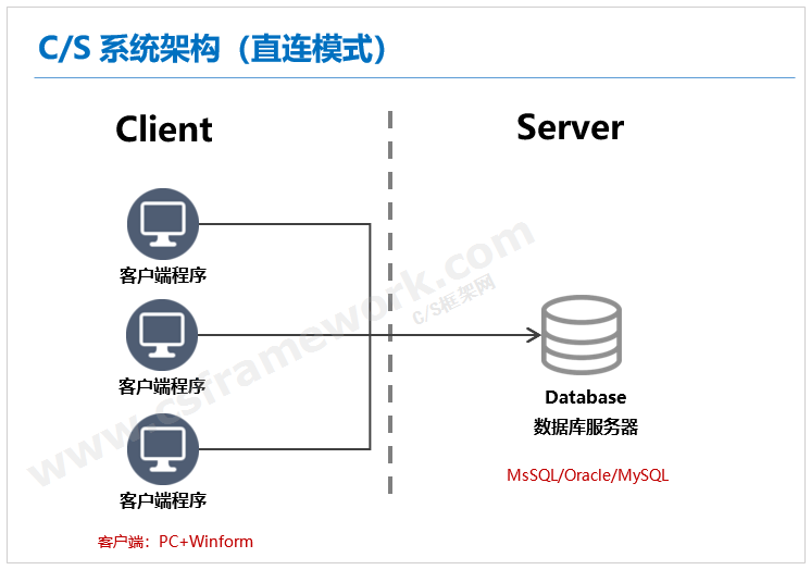 C# C/S框架模板 Winform软件开发模板框架![]() C/S架构 C/S结构(C/S架构),即大家熟知的客户机和服务器结构。它是软件系统体系结构,通过它可以充分利用两端硬件环境的优势,将任务合理分配到Client端和Server端来实现,降低了系统的通讯开销。目前大多数应用软件系统都是Client/Server形式的两层结构,由于现在的软件应用系统正在向分布式的Web应用发展,Web和Client/Server 应用都可以进行同样的业务处理,应用不同的模块共享逻辑组件;因此,内部的和外部的用户都可以访问新的和现有的应用系统,通过现有应用系统中的逻辑可以扩展出新的应用系统。这也就是目前应用系统的发展方向。 ![]() (Client/Server或客户/服务器模式):Client和Server常常分别处在相距很远的两台计算机上,Client程序的任务是将用户的要求提交给Server程序,再将Server程序返回的结果以特定的形式显示给用户;Server程序的任务是接收客户程序提出的服务请求,进行相应的处理,再将结果返回给客户程序。 关于C/S结构,请参考原文:https://www.csframework.com/cs.htm 模板框架 | 软件开发模板 基于C/S架构Winform开发框架提供ERP、进销存软件、财务模块、人事工资考勤系统(HR系统)作为实例开发模板,为软件开发团队提供快速搭ERP、MES等企业管理应用系统的开发基础架构,就是我们说的软件开发框架,或软件模板框架。 C/S框架网提供的开发框架模板助力您快速开发企业级ERP、MES、MRP、HIS、WMS、TMS、CRM、MIS、POS等数据管理系统。 客户案例 ![]() ![]() 项目案例: ![]() 框架模板开发的软件项目案例: 为什么使用C#开发,C#语言有什么优势? C#是微软公司在2000年7月发布的一种全新且简单、安全、面向对象的程序设计语言,是专门为.NET的应用而开发的语言。它吸收了C++、Visual Basic、Delphi、Java等语言的优点,体现了当今最新的程序设计技术的功能和精华。C#继承了C语言的语法风格,同时又继承了C++的面向对象特性。不同的是,C#的对象模型已经面向Internet进行了重新设计,使用的是.NET框架的类库;C#不再提供对指针类型的支持,使得程序不能随便访问内存地址空间,从而更加健壮;C#不再支持多重继承,避免了以往类层次结构中由于多重继承带来的可怕后果。.NET框架为C#提供了一个强大的、易用的、逻辑结构一致的程序设计环境。同时,公共语言运行时(Common Language Runtime)为C#程序语言提供了一个托管的运行时环境,使程序比以往更加稳定、安全。 ![]() · 开发Winform桌面程序 (MES系统最佳用户体验)。 · C语言提供强大的设备接口API (解决MES系统与设备集成)。 · 语言简洁。 · 保留了C++的强大功能。 · 快速应用开发功能。 · 语言的自由性。 · 强大的Web服务器控件。 · 支持跨平台。 · 与XML相融合。 ![]() 扫一扫加作者微信 ![]()