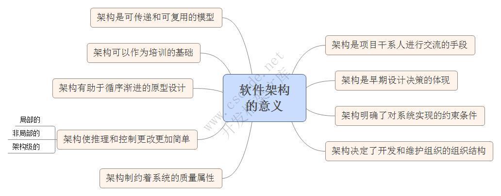 引言 软件架构设计就是软件系统的‘布局谋篇’,是软件抽象发展到一定阶段的产物。软件设计人员学习软件架构知识,旨在站在较高的层面上,整体的解决好软件的设计,复用,质量和维护等方面的实际问题。本文以图形的方式进行总结归纳,从软件架构的描述,设计,风格,评价,形成方法进行阐述。 软件架构设计总述