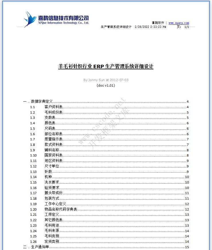 羊毛衫针织行业ERP-生产管理系统详细设计说明书docx文档下载