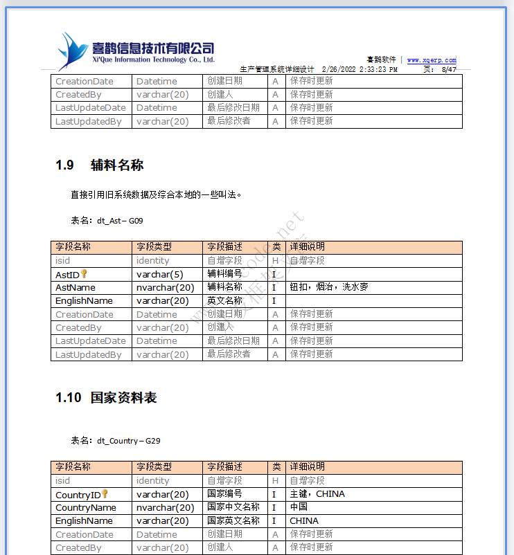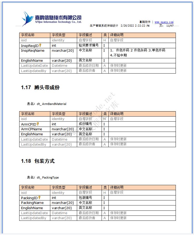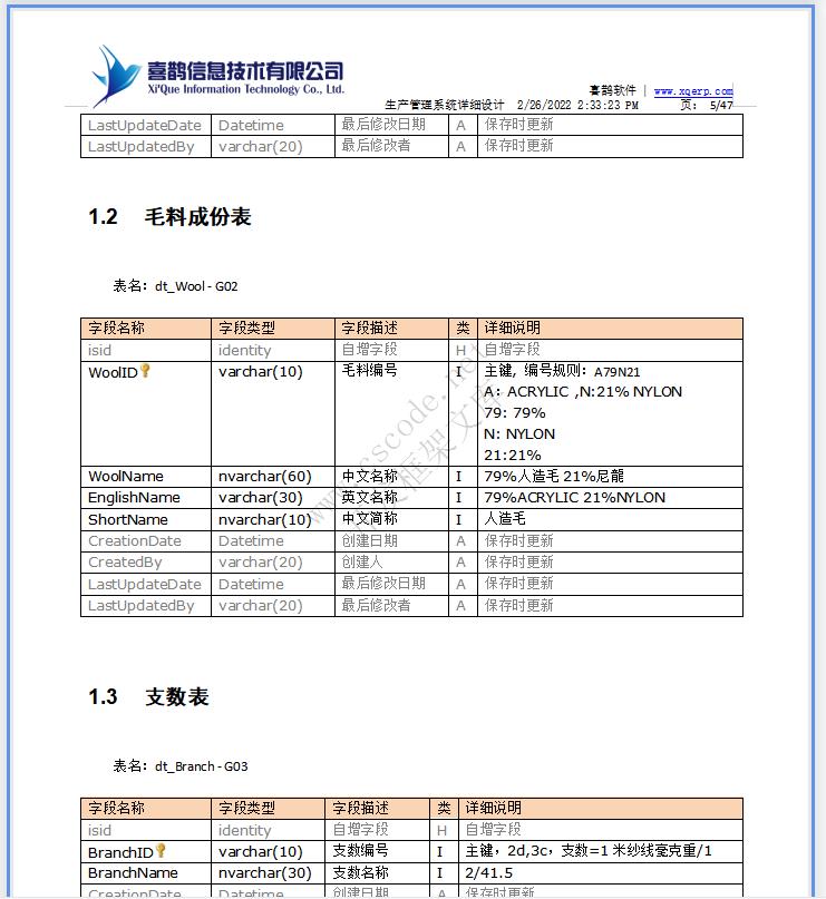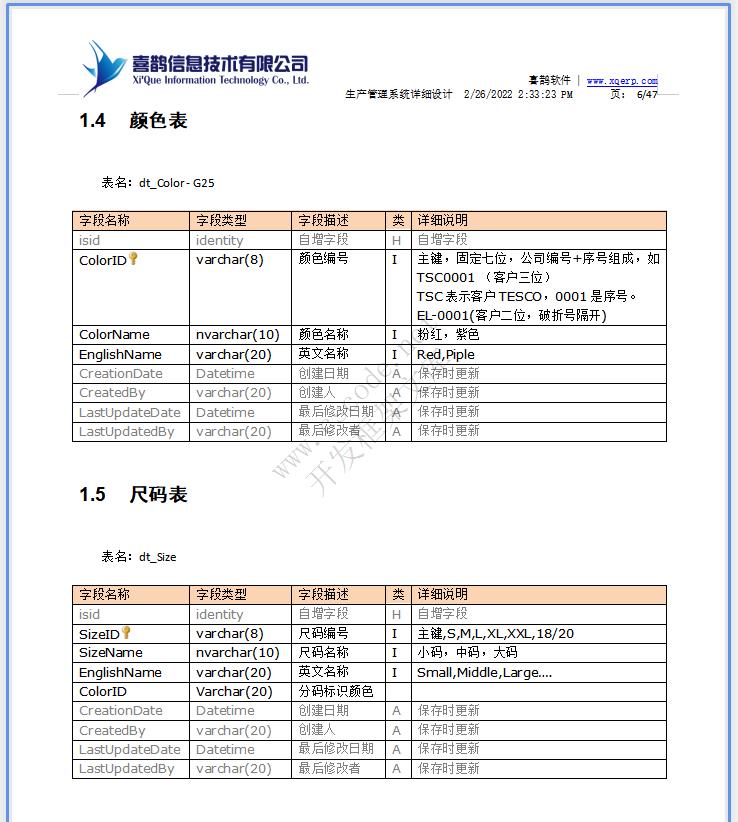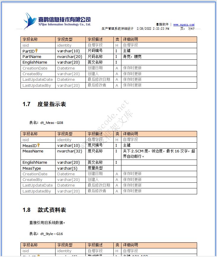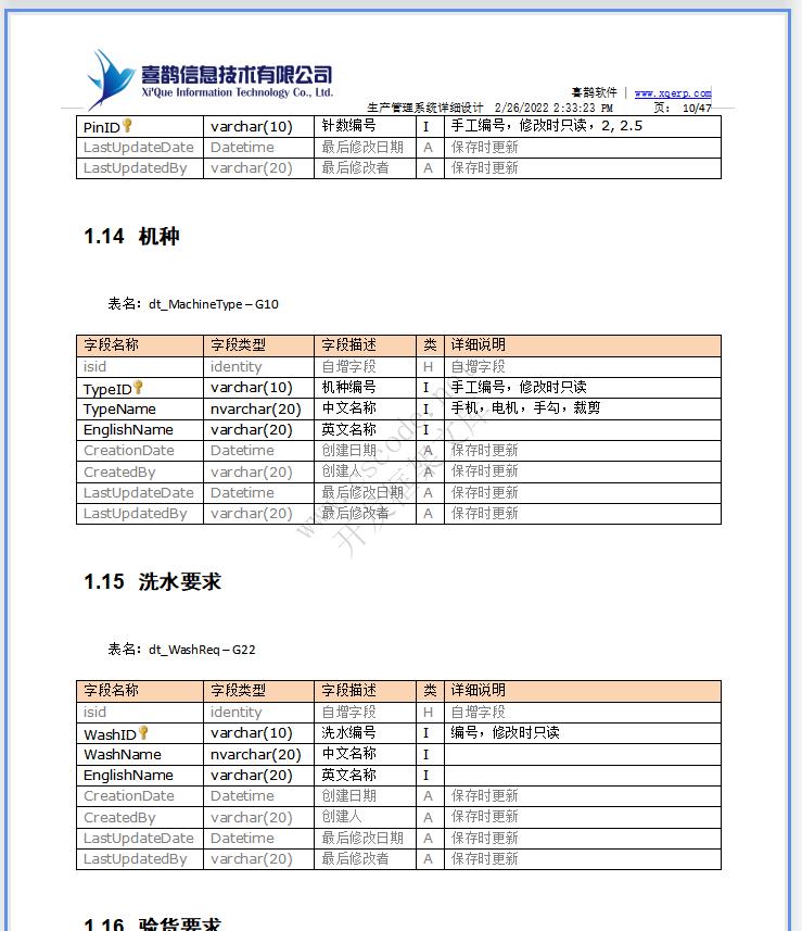 软件开发与设计 - 毛衫针织行业大型ERP系统-XA-ERP-生产管理系统数据库详细设计