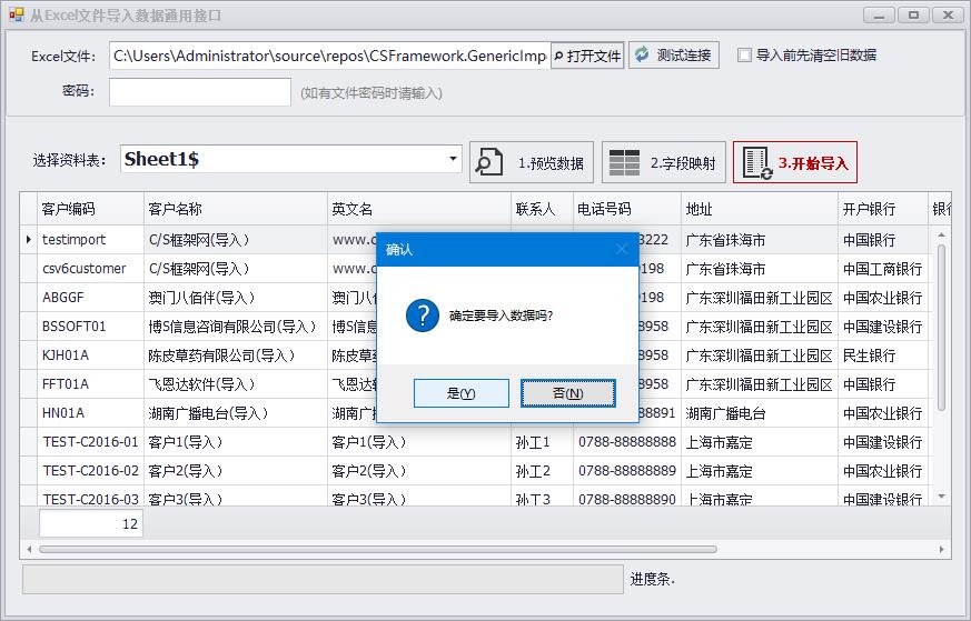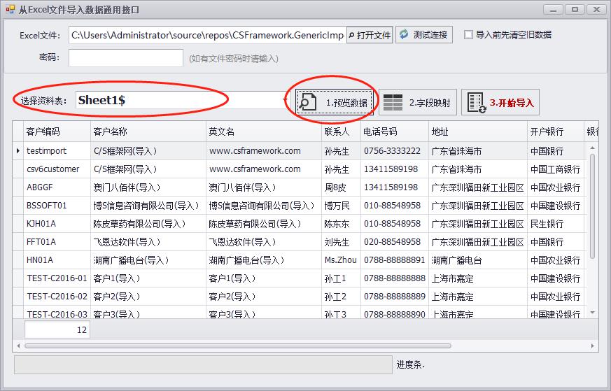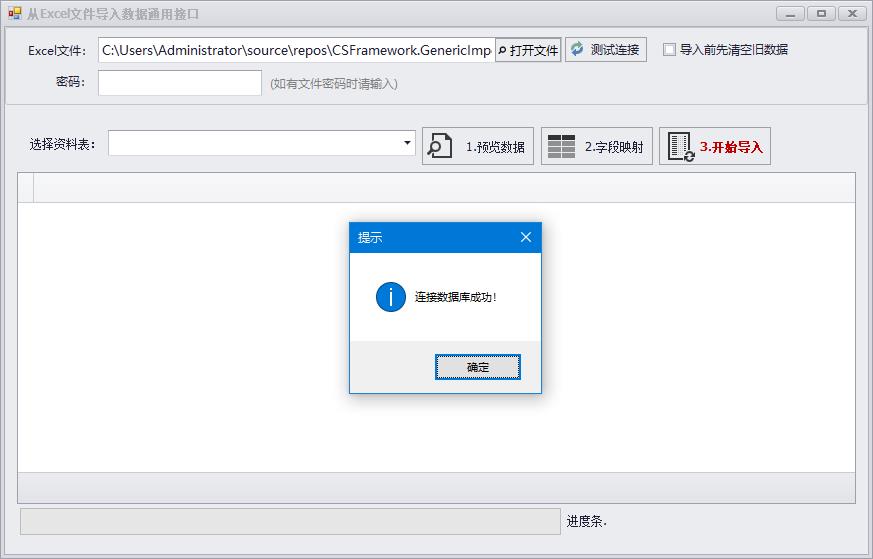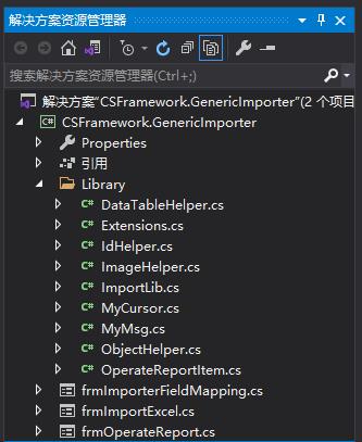 IImporterSource 接口提供扩展,用户可实现导入其他文件或数据库的资料。 xls 文件连接字符串C# 全选 xlsx 文件连接字符串C# 全选 二、VS解决方案核心库:CSFramework.GenericImporter