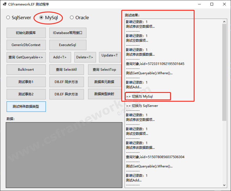 CSFramework.EF数据库框架 - 特殊数据类型测试报告(_TestDataUpdate表)