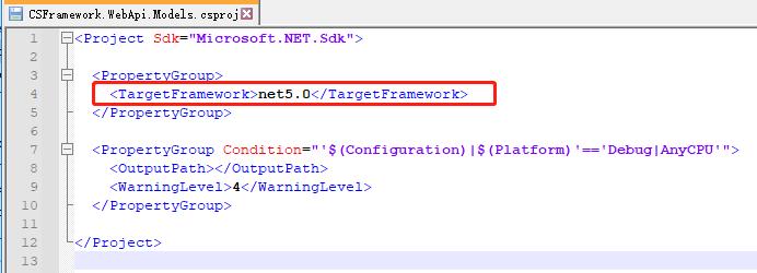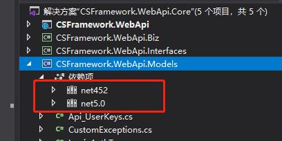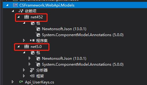 DLL类库同时支持.NETFramework以及.NETCore(EF模型支持.NET双平台架构) 目录Winform开发框架迭代升级到.NET Core的过程中,要将服务端原有的.NET Framework代码迁移到.NET Core,同时要支持客户端(.NET Framework)的项目引用,因此一个DLL类库要同时支持.NET 5.0以及 .NET Framework 4.5.2。 目前 CSFramework.WebApi.Models 的目标框架是.NET 5.0,如下图: