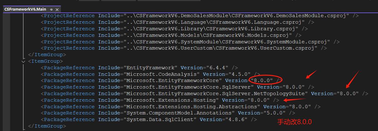 编译可能出现错误,如下少量代码需要调整: C# 全选 三、.NET7 升级到 .NET8双击一个Project,如:CSFrameworkV6.Main.csproj,主程序配置的目标框架: