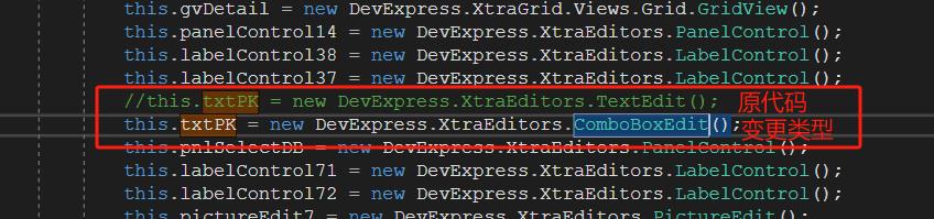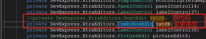 3、找到 txtPK 组件的变量申明及实例化代码,变更组件类型