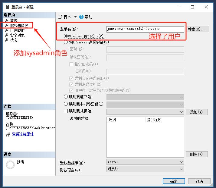 SQLSERVER:误删Windows验证登录用户而SA用户禁用,导致无法使用Windows身份验证的解决方案