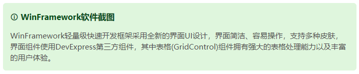 WinFramework轻量级快速开发框架提供通用类库、数据界面、通用权限管理系统,以及丰富的实例开发模板和开发文档,我们提供线上技术指导服务,助力开发团队快速搭建自己的软件项目。
